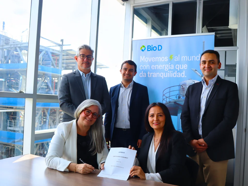 Bogotá, Colombia — [20 de octubre de 2025] — Airbus y Bioglobal han firmado un acuerdo de colaboración a través de un Joint Study Agreement (JSA), con el objetivo de apoyar el desarrollo del proyecto “Un regalo de la Tierra al Cielo”, que busca impulsar la producción de combustibles sostenibles de aviación (SAF, por sus siglas en inglés) en Colombia.